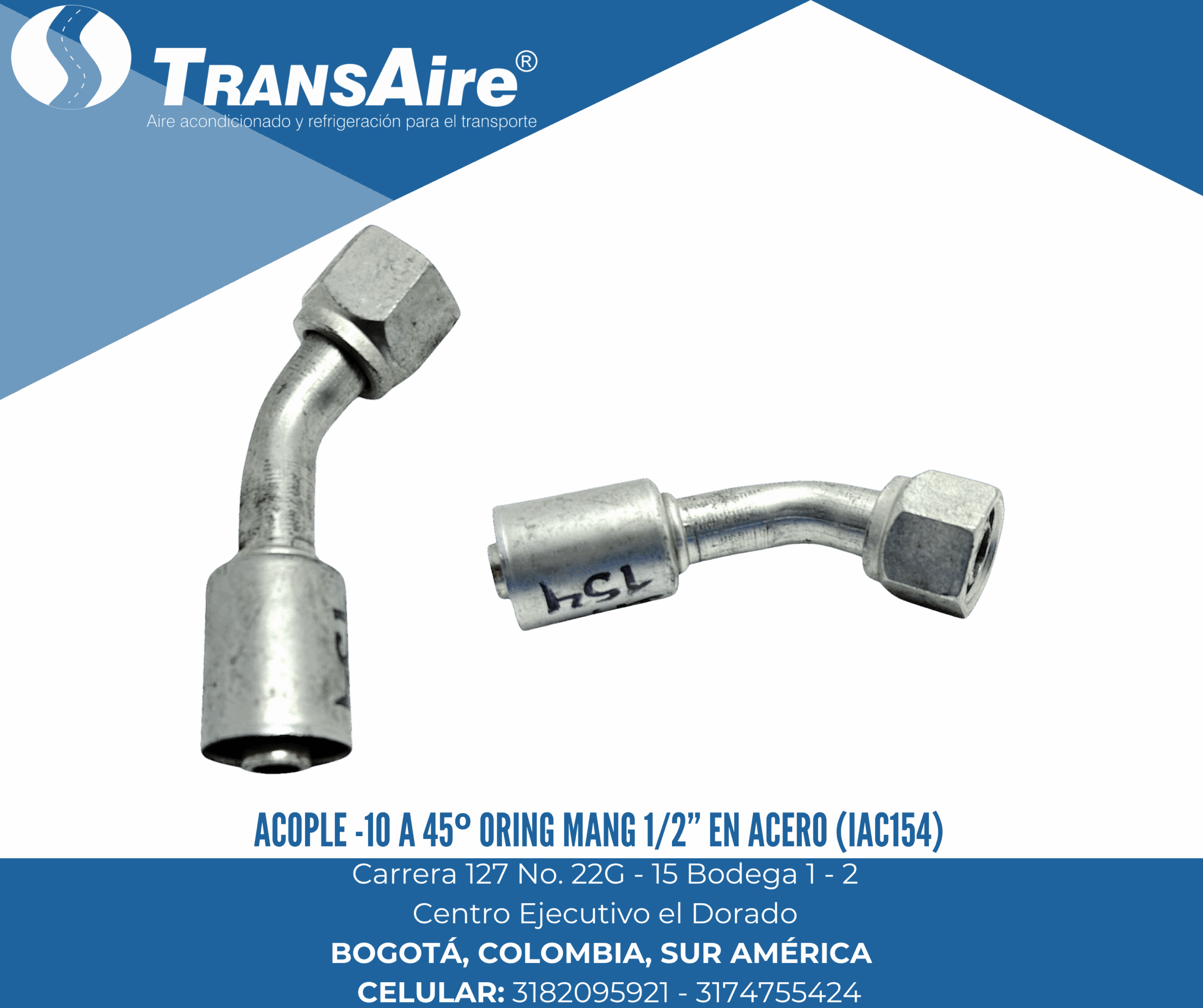 Acople -10 a 45º Oring mang 1/2” en acero (IAC154)