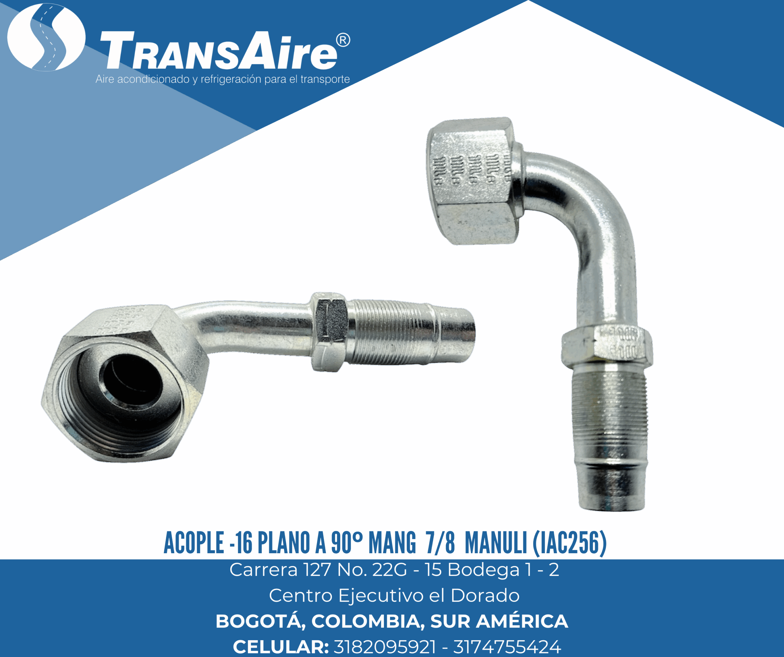 Acople -16 plano a 90º mang 7/8 Manuli (IAC256)