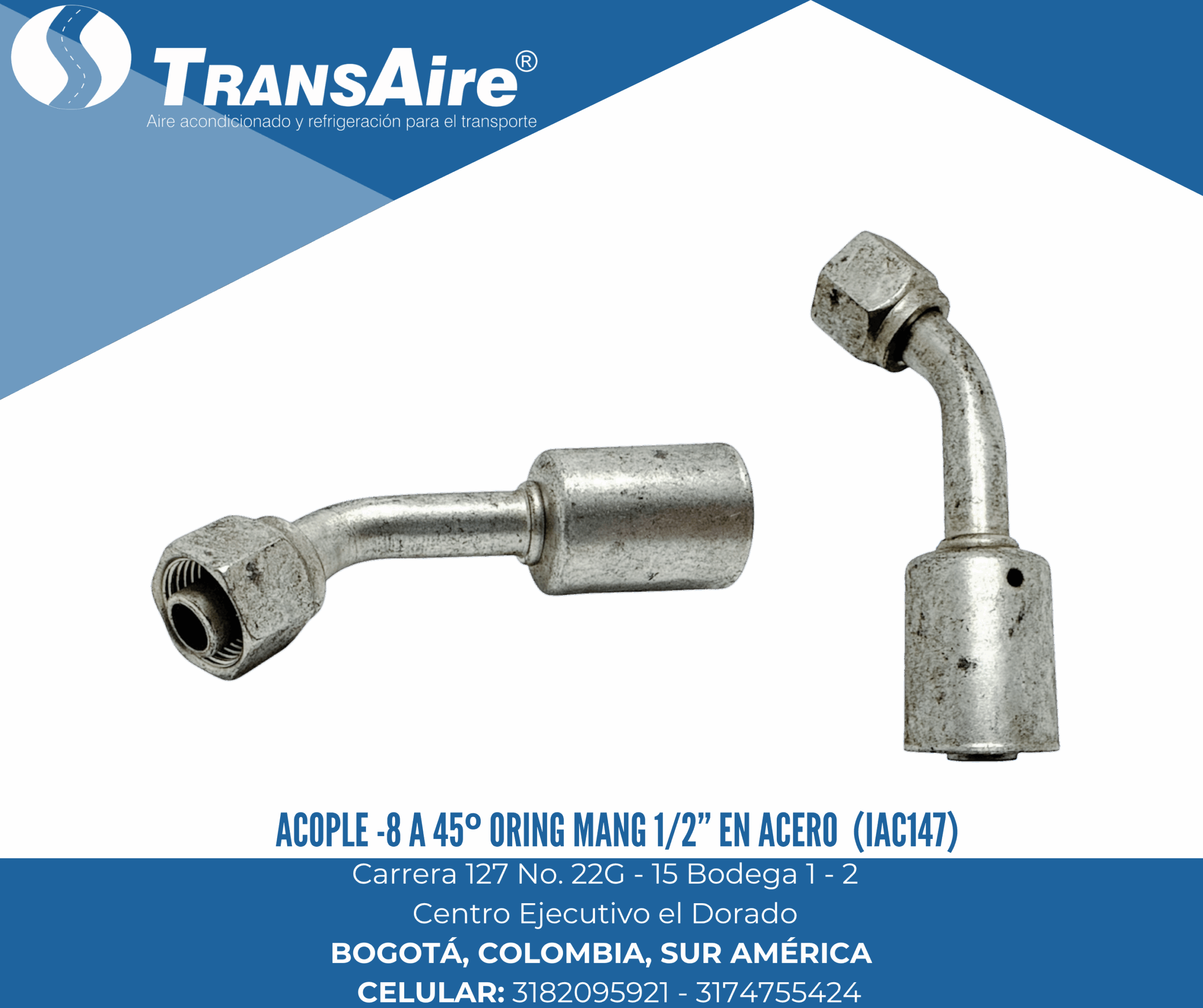Acople -8 a 45º Oring mang 1/2” en acero (IAC147)