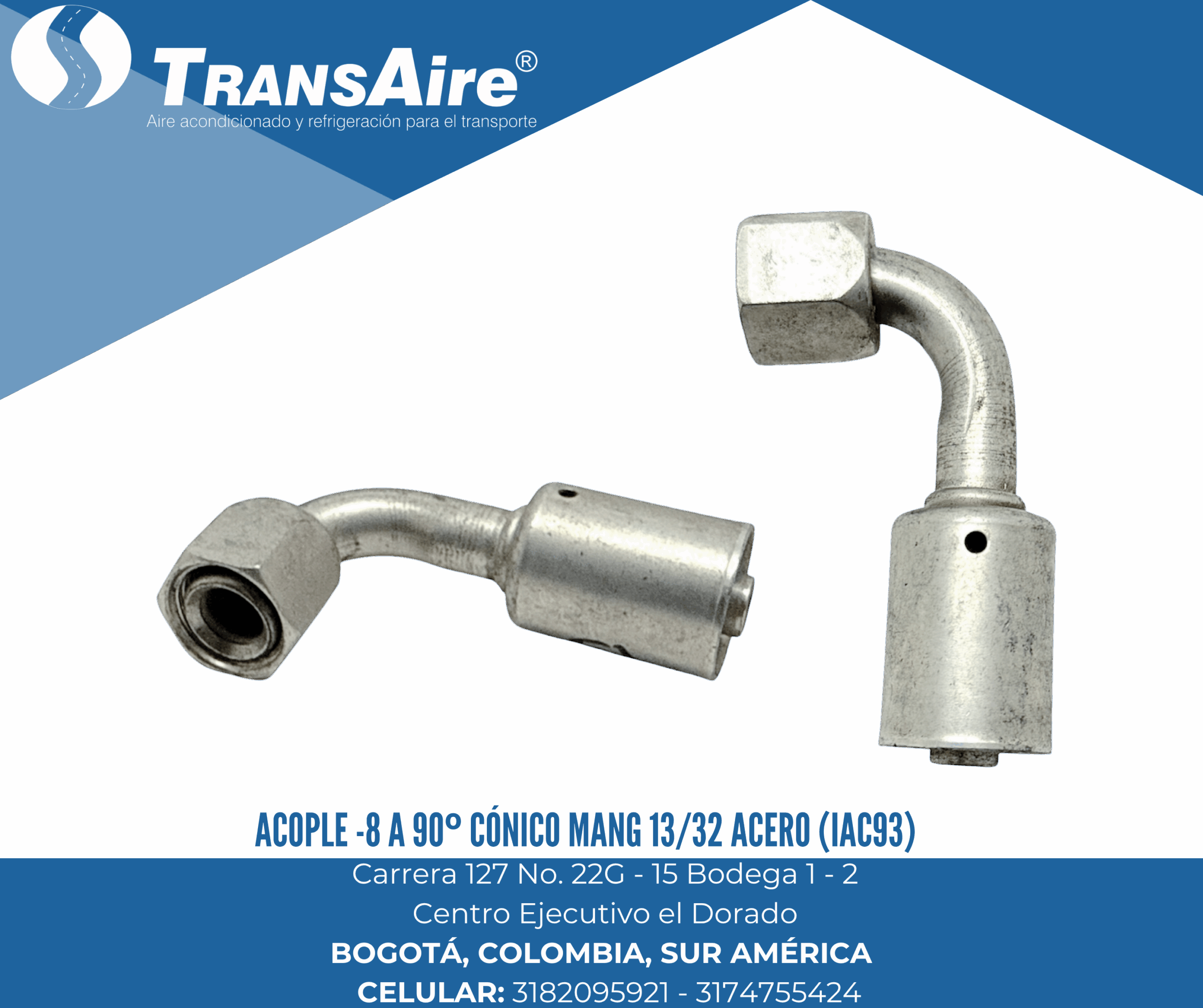 Acople -8 a 90º cónico mang 13/32 acero (IAC93)