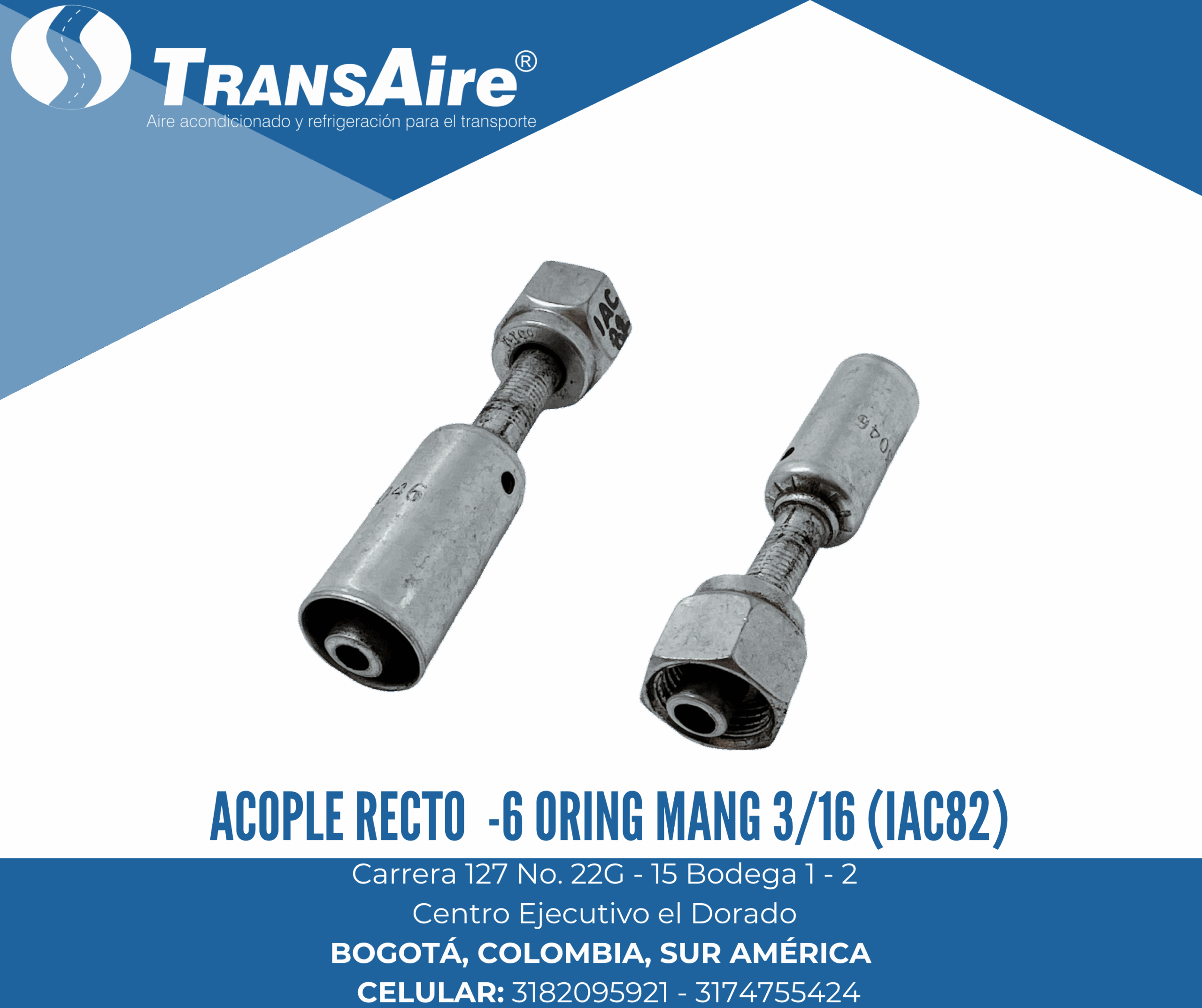 Acople recto -6 Oring mang 3/16 (IAC82)