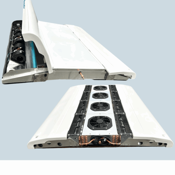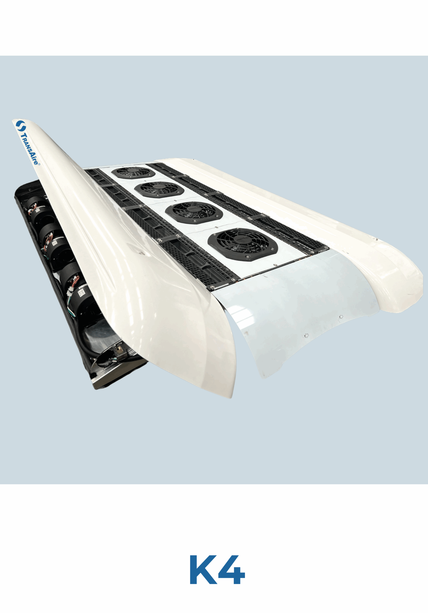 El diseño aerodinámico del equipo K4 conserva la línea visual de su carrocería, su distribución de aire por ductos maximiza el espacio interior y de los portaequipajes. Es un equipo silencioso, esbelto, de alta eficiencia con unidades libre de corrosión fabricadas con materiales de poliéster reforzado y acero inoxidable.